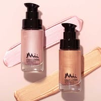 Pearlescent face and body liquid highlighter.