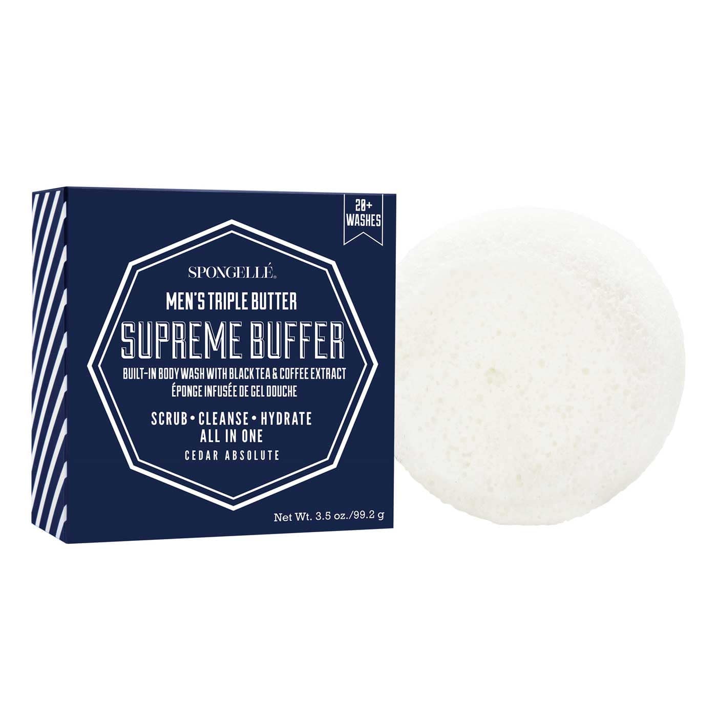 Place buffer under running water, squeeze to absorb. Massage in a circular motion to cleanse skin. Rinse and squeeze out excess water after each use.