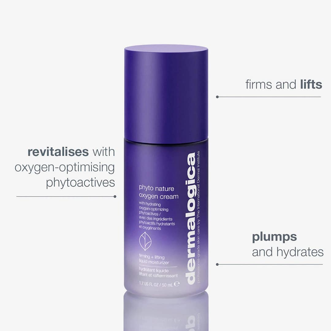 - Dispense 1-2 pumps of Phyto Nature Oxygen Cream onto fingers and apply to face and neck in light upward strokes. Follow with SPF in morning regimen.