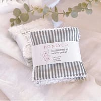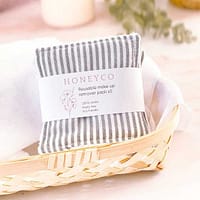 Pack of 5 100% cotton make up remover pads, all natural and perfect for removing your make up at the end of the day. One side is super soft terry towelling, so gentle on your skin, and the other side is a beautifully simple grey and white stripe, which is a little more exfoliating.